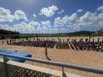 10月2日(木)午前中は沖縄の伝統文化に触れる「闘牛見学」を行い、大きな牛の迫力に驚きながらも真剣に見入っていました。